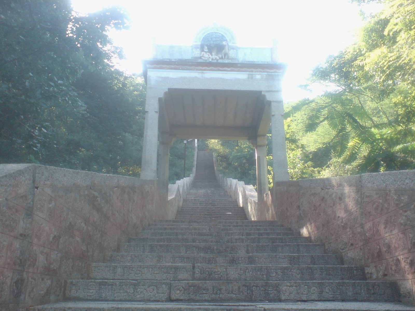 After Rathnagiri visit I came back to New Bus Stand. There was a direct bus to Vallimalai (Krishna Bus Service). It took me around 30 mins to reach Vallimalai (close to 35kms from Vellore). This temple is about 1500 years old. It is situated on top of a small hill with a flight of 300 steps leading to it. This is one of the most beautiful temples I had been to so far. I definitely wish to take my family there the next time.
